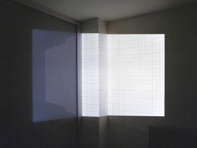 Ein Teil des Ateliers B der Cité Internationale des Arts in Paris wurde als Modell im Maßstab 1:10 nachgebaut. Sämtliche Wände, sowie Boden und Decke des Modells sind durchlaufend mit Millimeterpapier verkleidet. In diesem Modell wurden aus unterschiedlichen Positionen und Blickwinkeln Detailaufnahmen hergestellt. Die so entstandenen Diapositive wurden nun in den realen Arbeitsraum projiziert. Dabei wurde das jeweilige Diapositiv genau auf den Raumausschnitt des Ateliers projiziert, der dem Bildausschnitt der Aufnahme im Modell entspricht. Das Projektionsbild erfährt durch die räumliche Projektion in das Atelier eine Verzerrung. Die Bildinformation des Diapositivs legt sich als eine zweite Schicht deckungsgleich über die Atelierarchitektur und vollzieht dabei deren räumliche Gestalt nach.